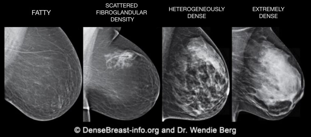 Although screening mammography is a great tool in the detection of breast cancer, it has limitations, particularly in women with dense breast tissue. Women with dense breast tissue are notified of their mammographic density so that they may discuss additional screening options (supplemental screening with MRI or ultrasound) with their providers.